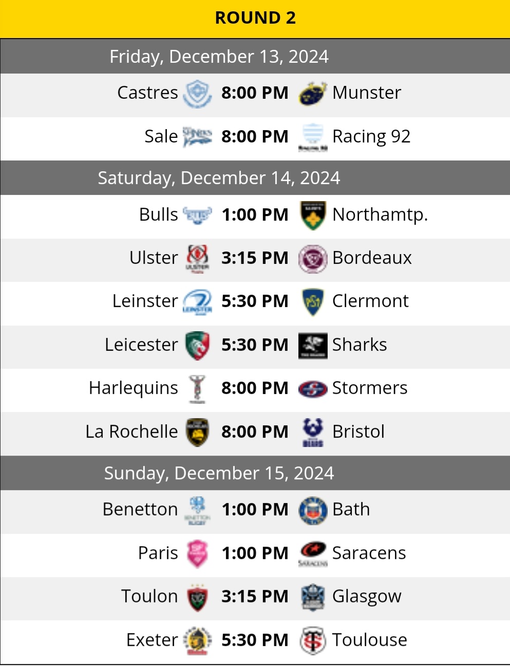 The format is pretty terrible as a whole, but back to back against the same team makes it worse. It's fine if some games are competitive, but any one-sided games just become a waste of time. If you get hammered in the first two games your tournament is close to over already and morale will be in the tank. On the flip side, if you win the first two games comfortably against the same team you have a huge advantage. At least varying the teams you play each round allows for some more competition and uncertainty. This format is just shitty.Most common pairing in European rugby is back in a game no one asked for. We have snatched some victories from the jaws of defeat against Castres, but they're a horrible team to play against in a horrible ground to go away to, and I mean that as a compliment. Totally different team at home and they won't send out the kids here.